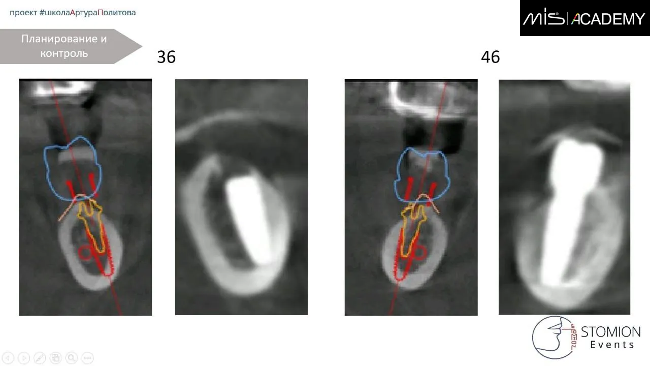 — Имплантаты MIS C1 в позициях 2-4-6.