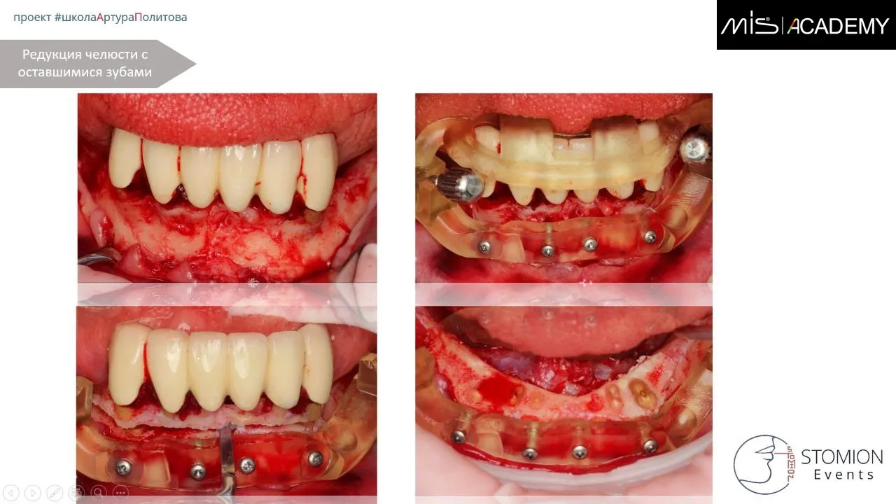 — Редукция сразу с оставшимися зубами, выколупливание апексов.