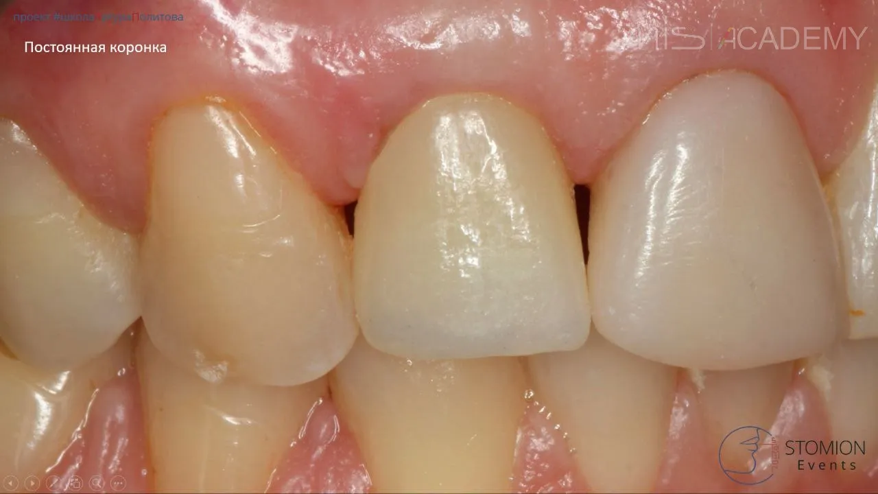 — Спустя 6 месяцев изготовление постоянной коронки, цементная фиксация.