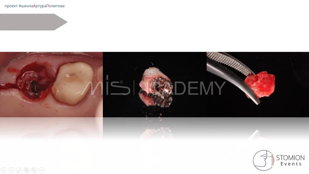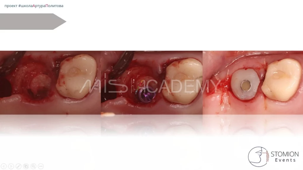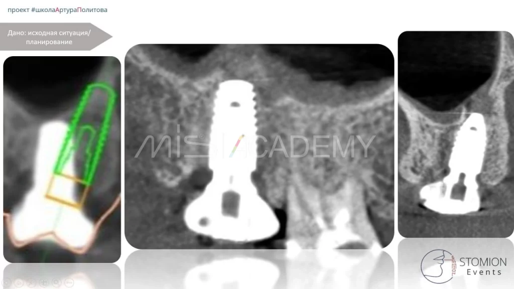 — Повторный анализ ситуации выявил истинную причину: хронический периодонтит зуба 1.6, который привел к резорбции тканей и поломке предыдущего имплантата.