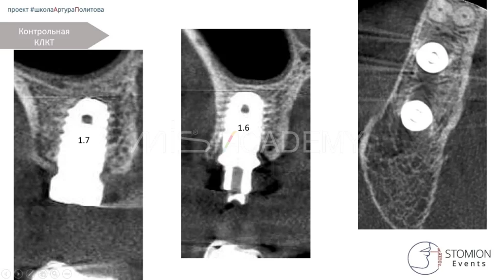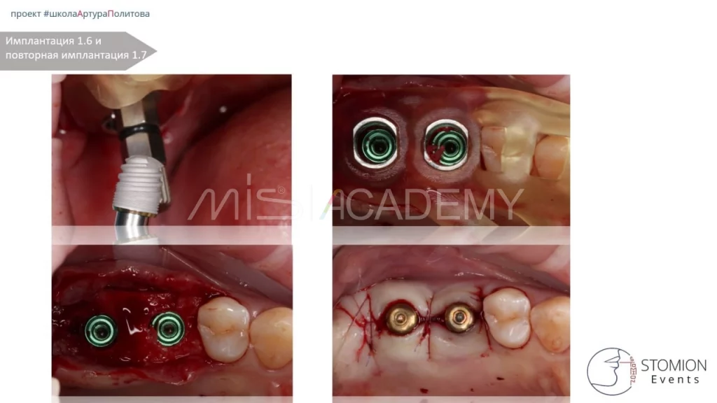 — Через 3 месяца проведена имплантация в области 1.6 и 1.7.