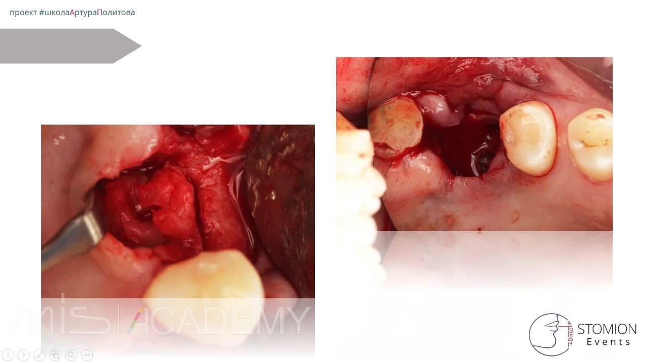 • Исход положительный, костная регенерация и интеграция трансплантата.