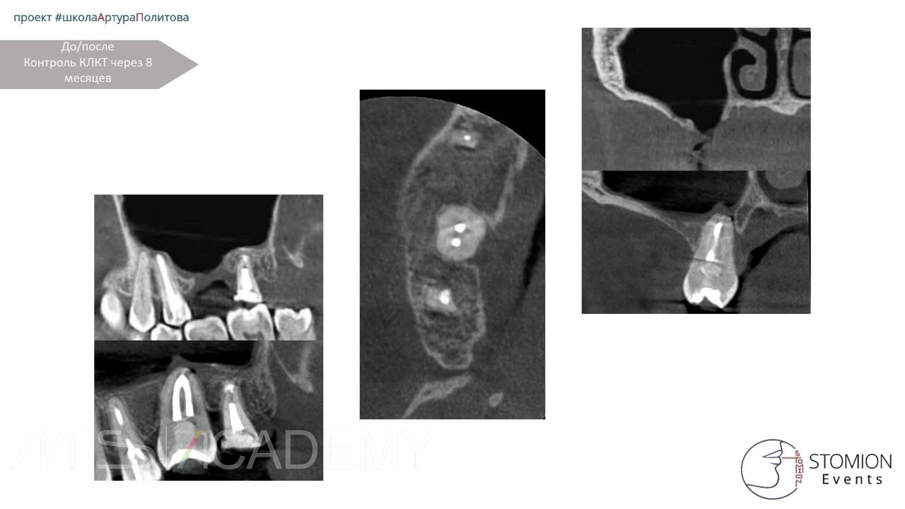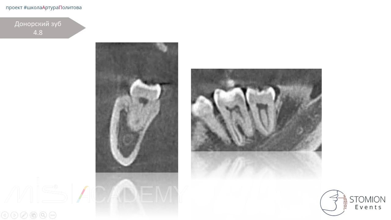 • Одновременно удалён зуб 4.8, трансплантирован в область адентии 1.6 с ТКСЛ.