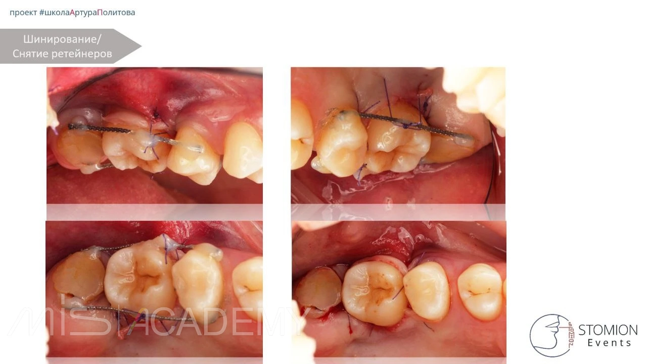 • Через 14 дней — снятие ретейнеров, депульпирование, наложение кальция.
