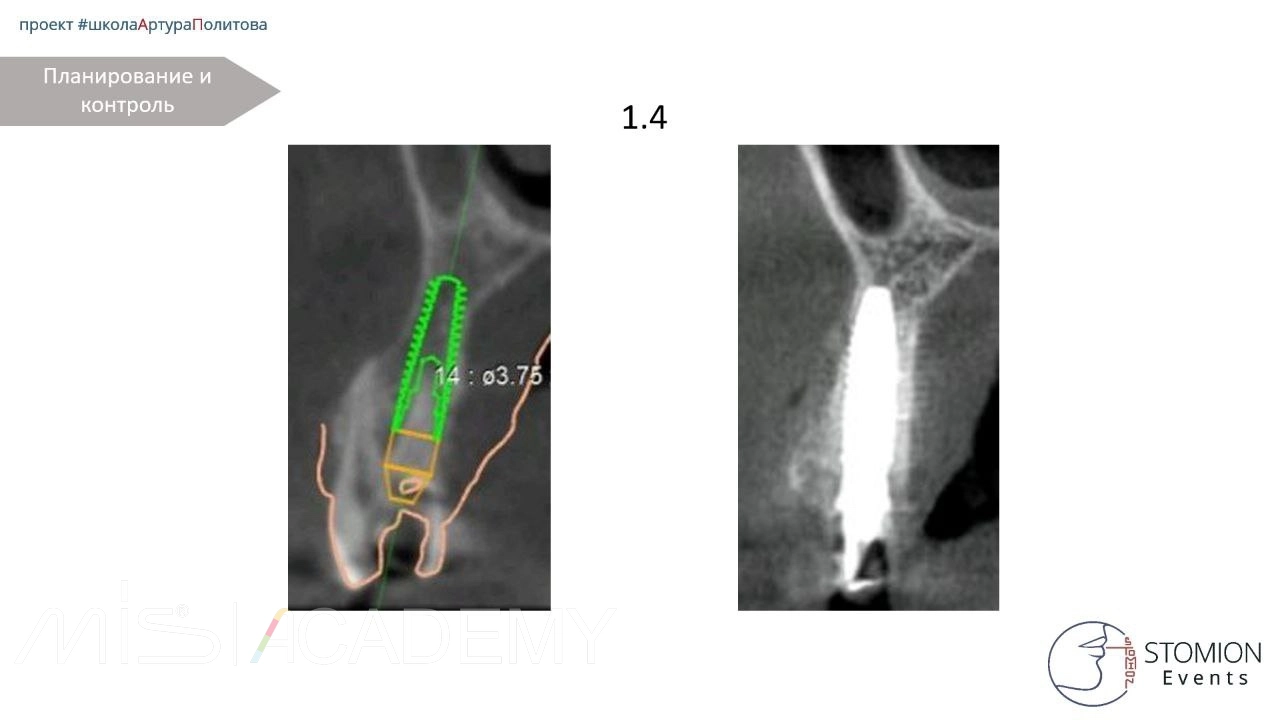 — Одномоментная имплантация MIS C1 3,75х13 в небную лунку, торк 45+