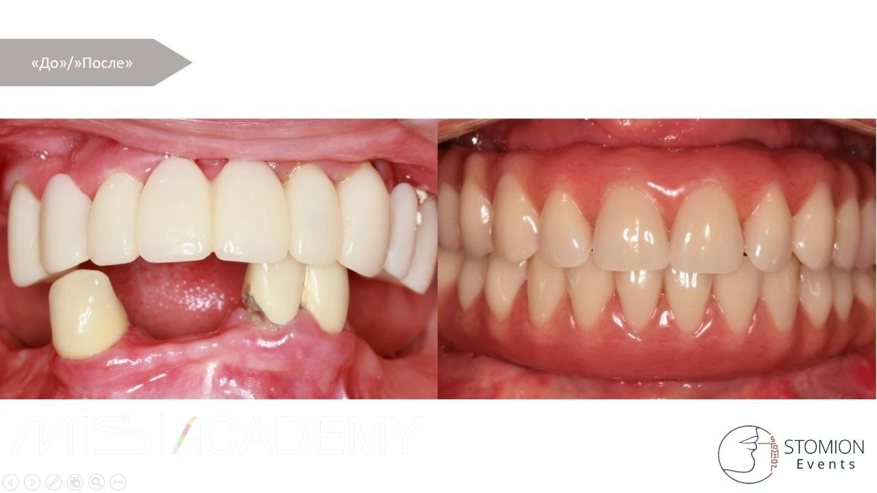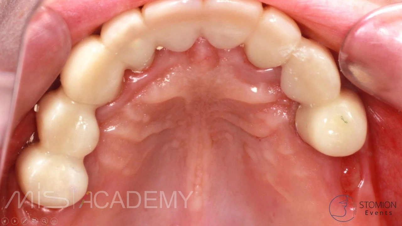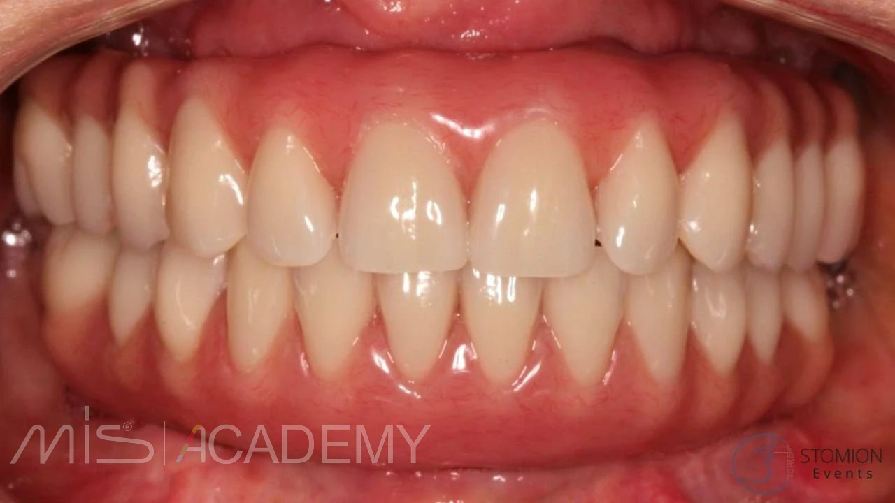 P/S На финишном фото — акрил с КХС. Вроде выглядит неплохо. Хотя мы сейчас предпочитаем делать на титановой балке, чтобы контакт слизистой был с полированным титаном, а не акрилом.