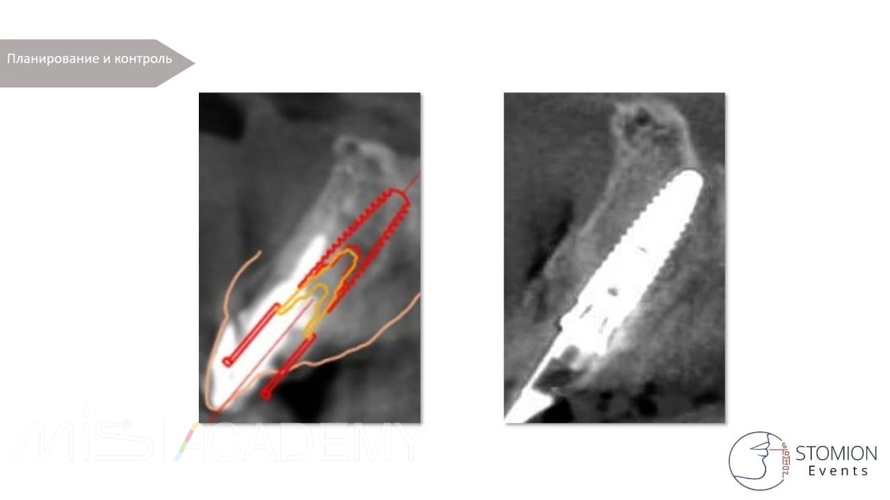 — Выполнена одномоментная установка имплантата MIS C1 3,75 × 13 мм с коннектом 3 мм. Зазор более 2 мм.