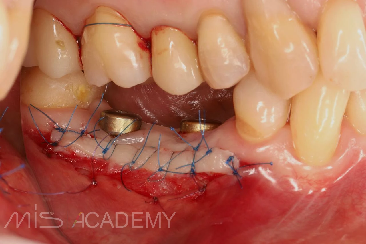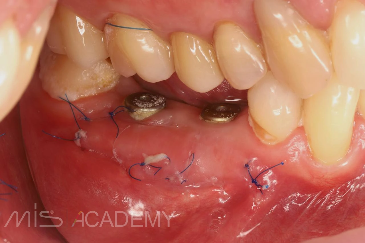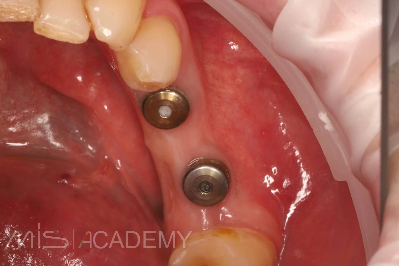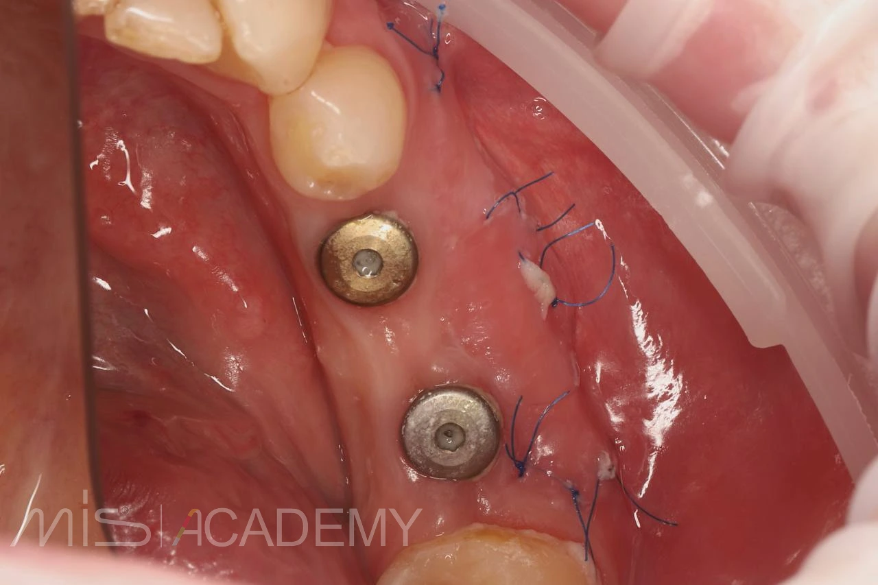 — Увеличение зоны прикрепленной слизистой в области ранее установленных имплантов MIS C1, с помощью апикально-смещенного лоскута с использованием СДТ с неба.