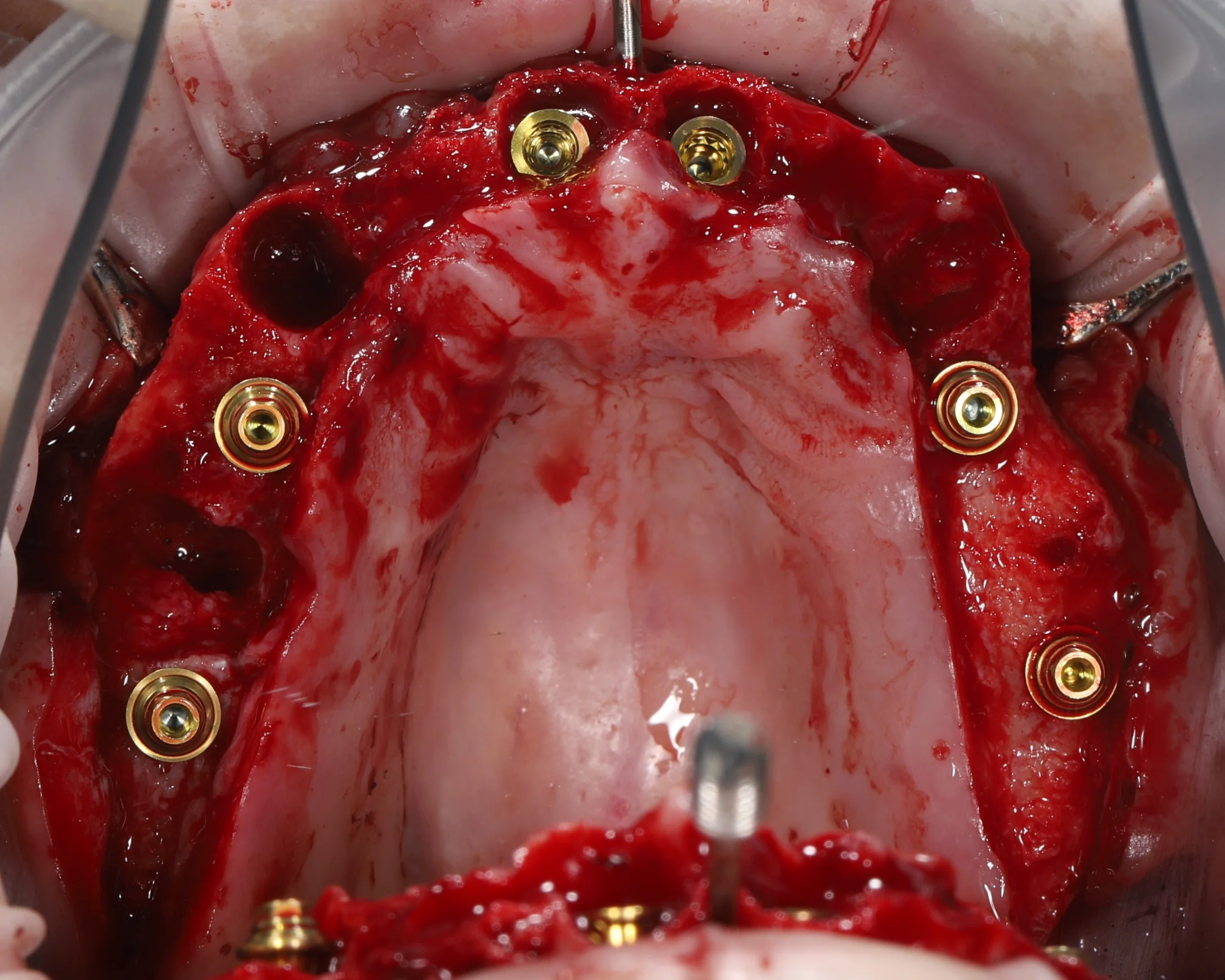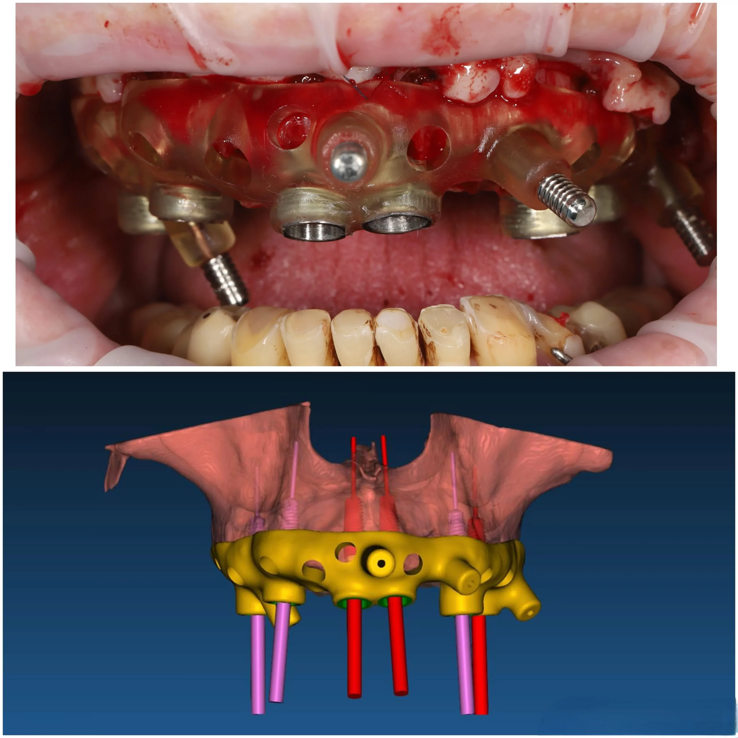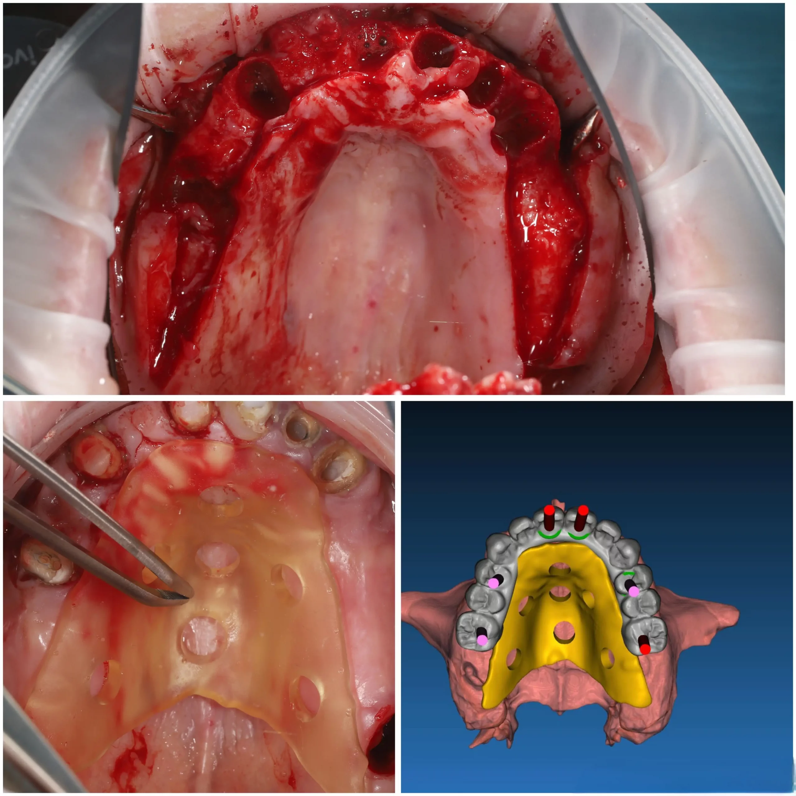3. Фиксирован накостный шаблон, установлены 6 имплантатов C1, 4 прямых MU и 2 connect abatment.