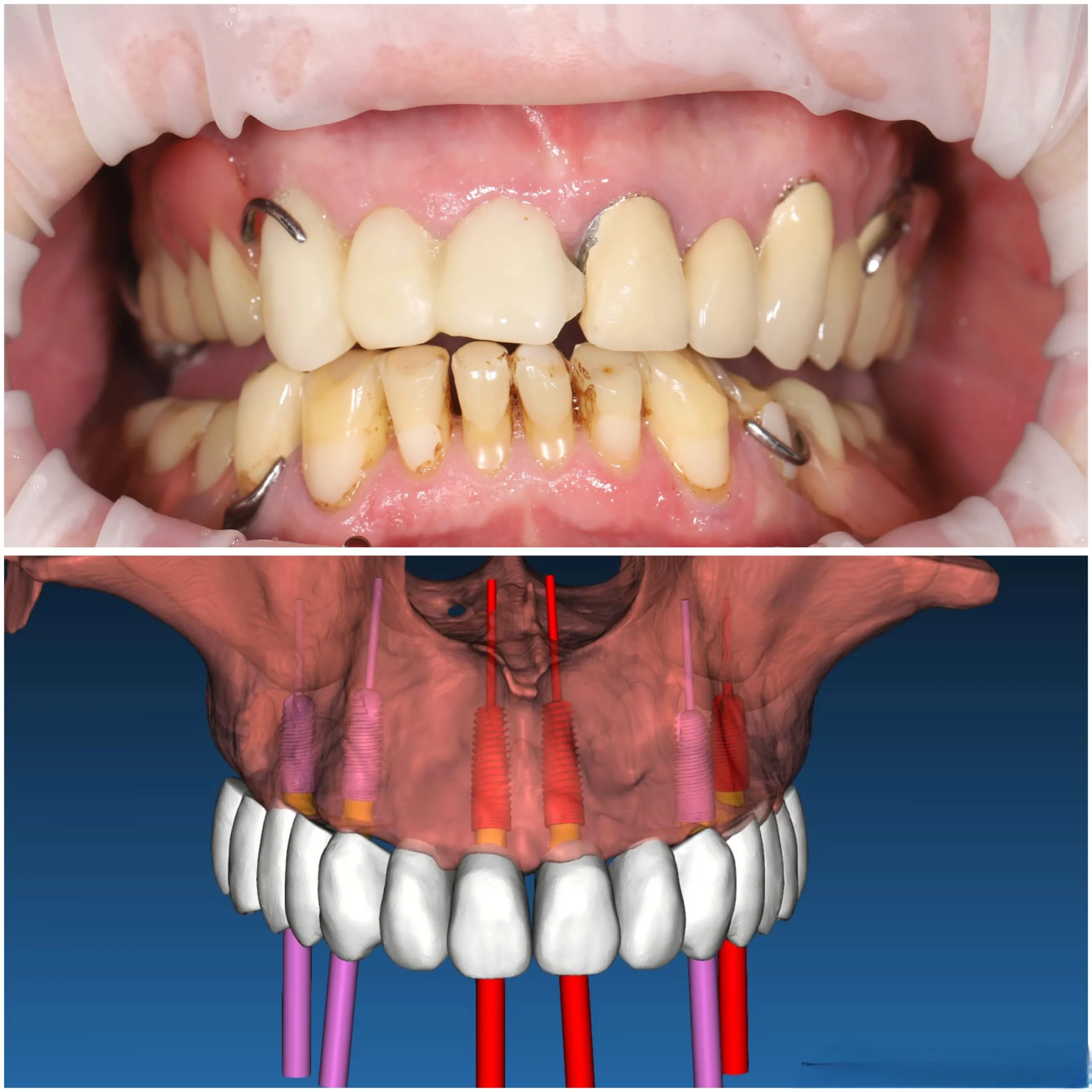 Тотальная реабилитация, одномоментная имплантация + установка 6 имплантатов