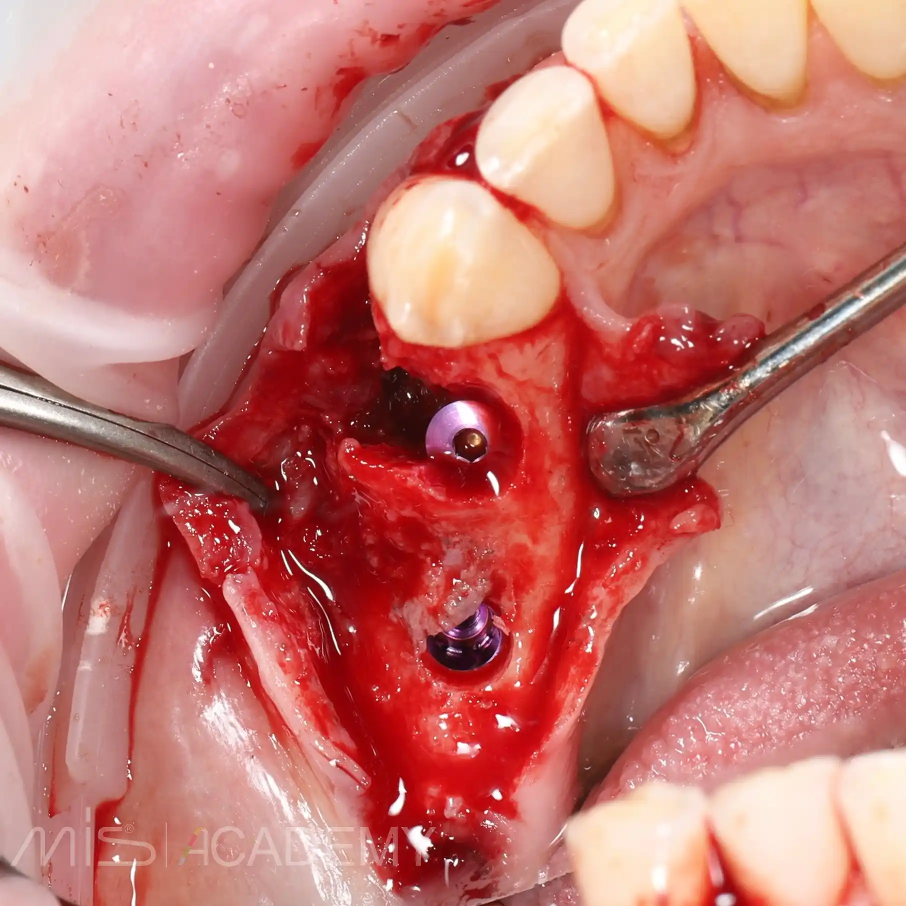 — На первом этапе был удален зуб 4.4 и установлены 2 имплантата Mis Implants C1 в области 4.4 и 4.6 (free-hand).