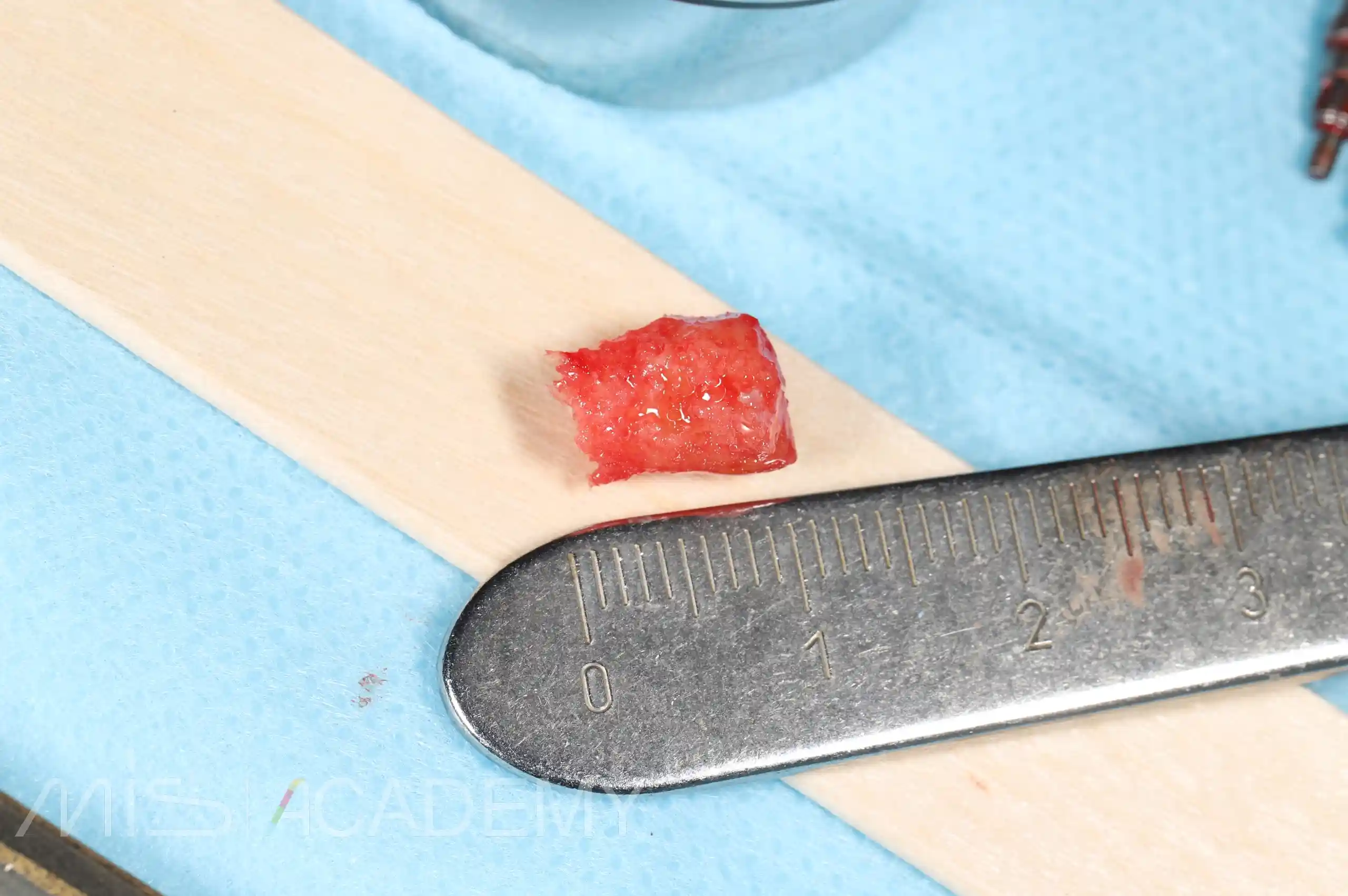 — Закрыли костный дефект с помощью блока из бугра ВЧ (B2S) и ССТ в области имплантатов 4.6 и 4.7.