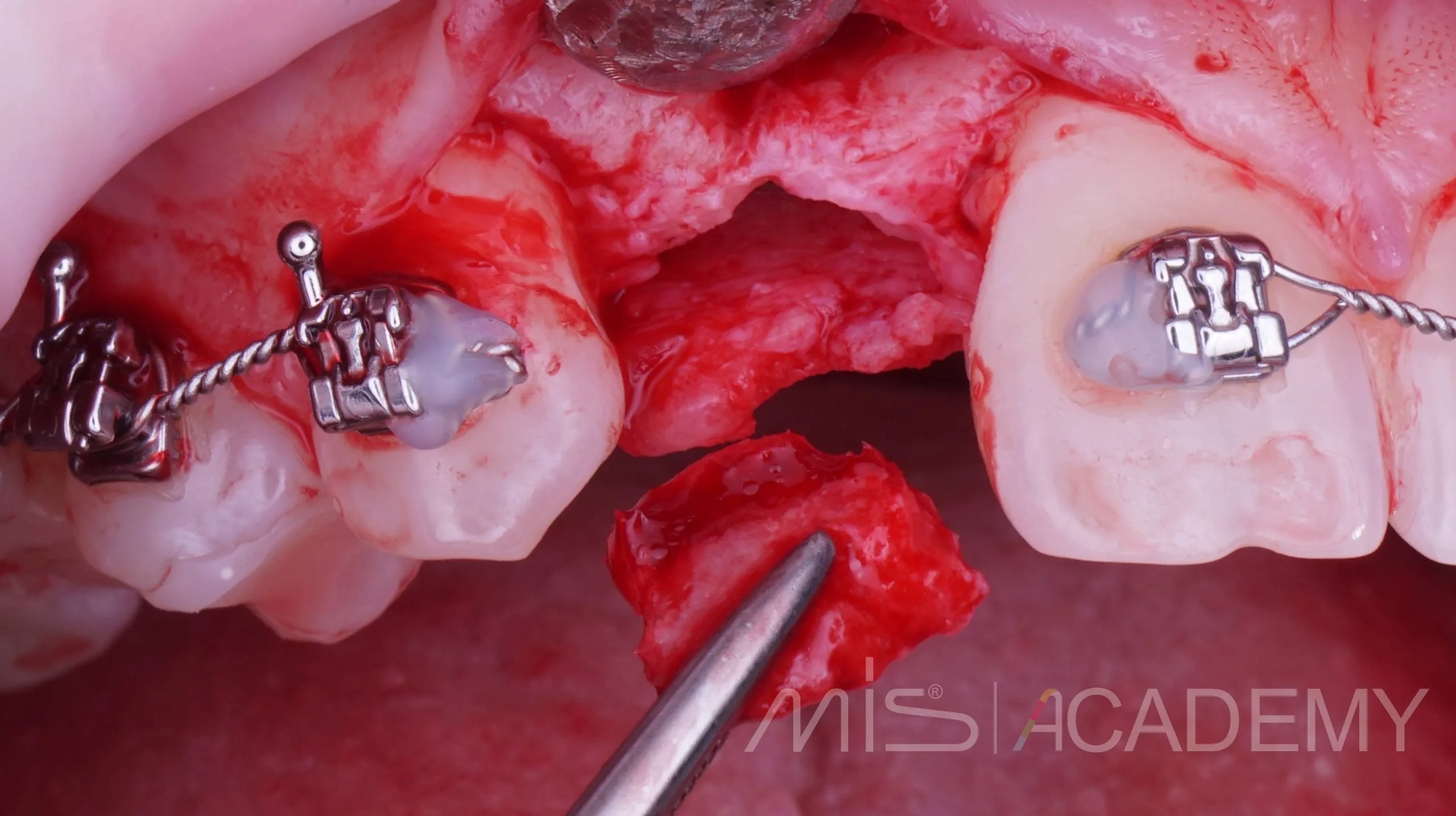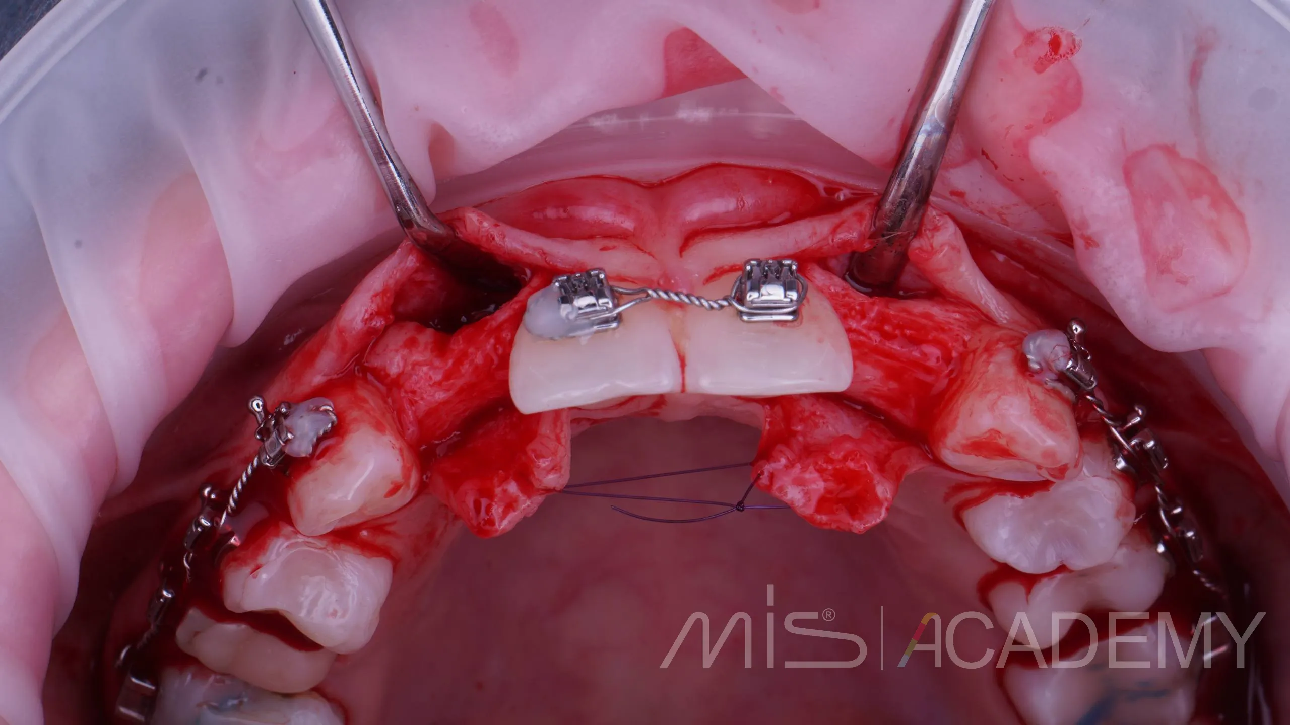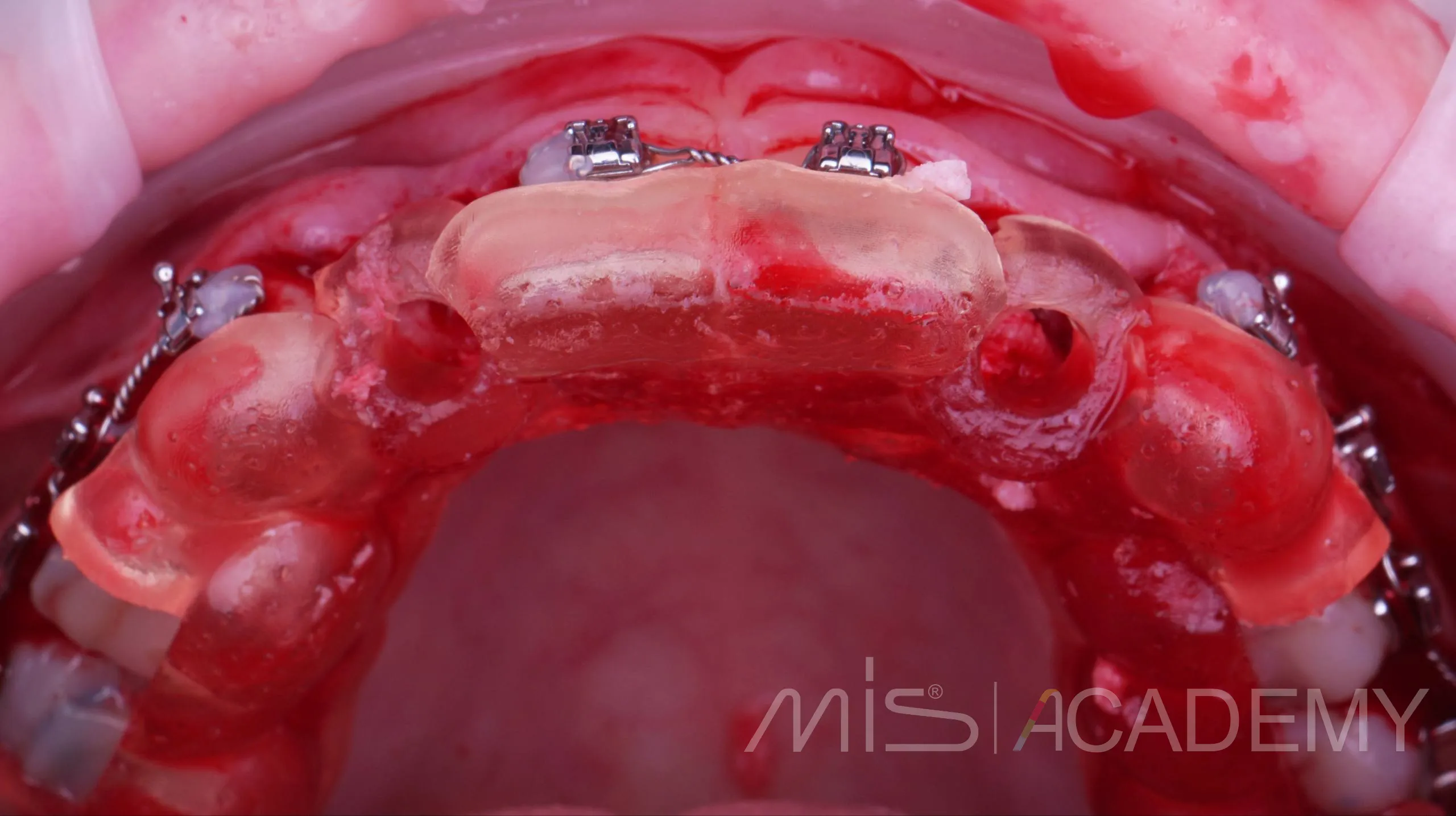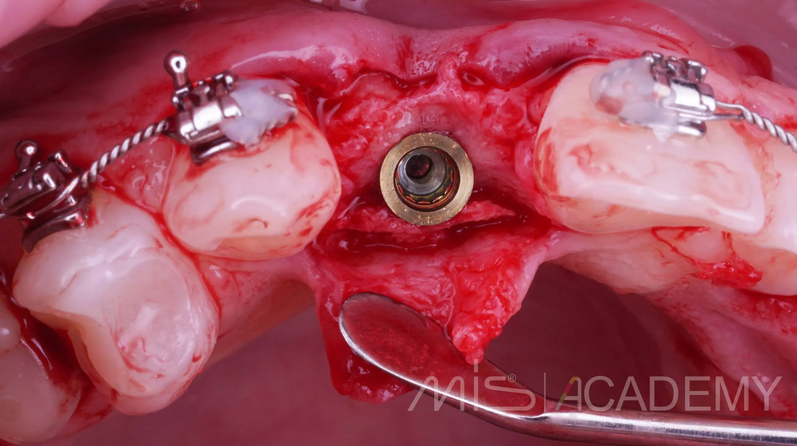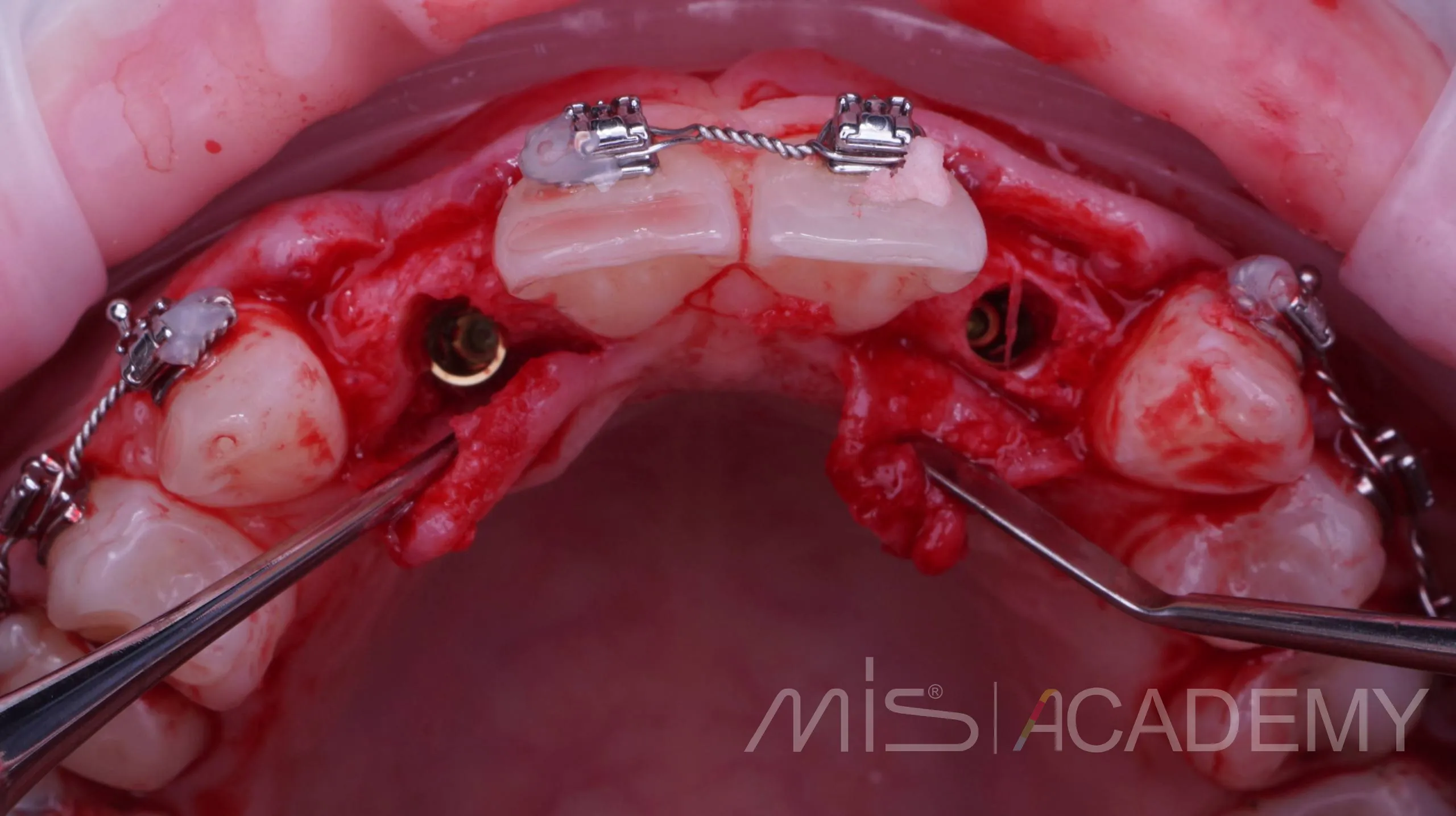 Небольшой рекол в 1 год после имплантации в область адентии двоек на верхней челюсти.