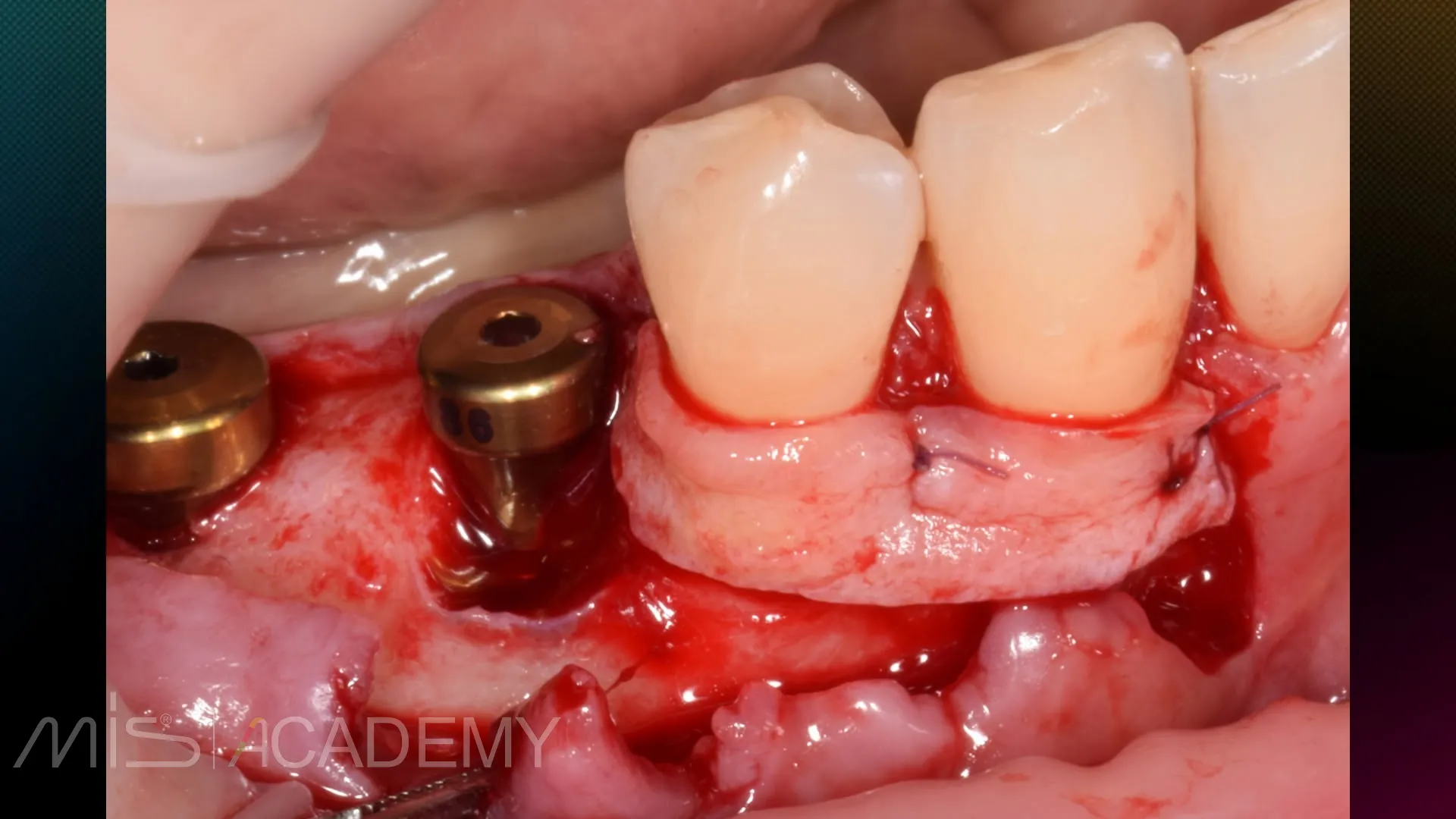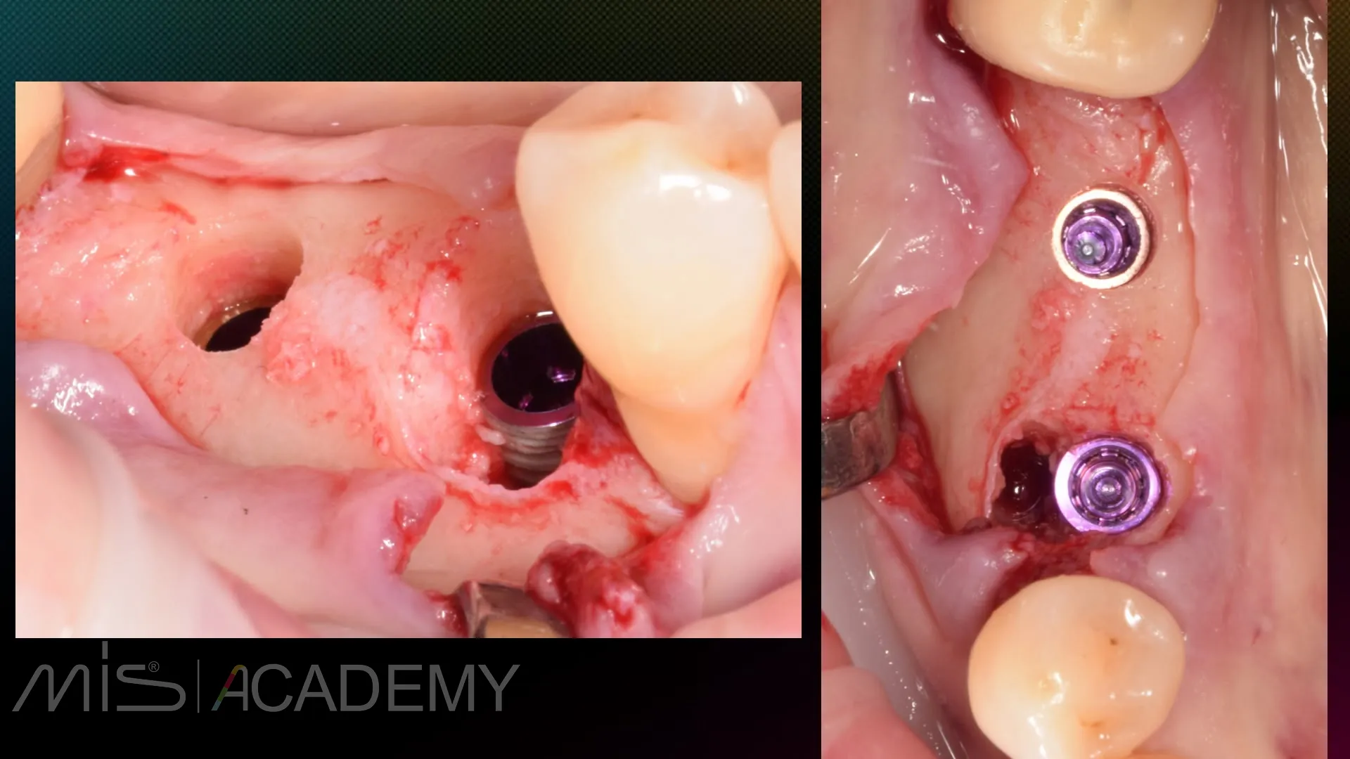 — Установка имплантатов MIS C1 по одномоментному (позиция 4.5 зуба) и отсроченному протоколу (позиция 4.6 зуба).