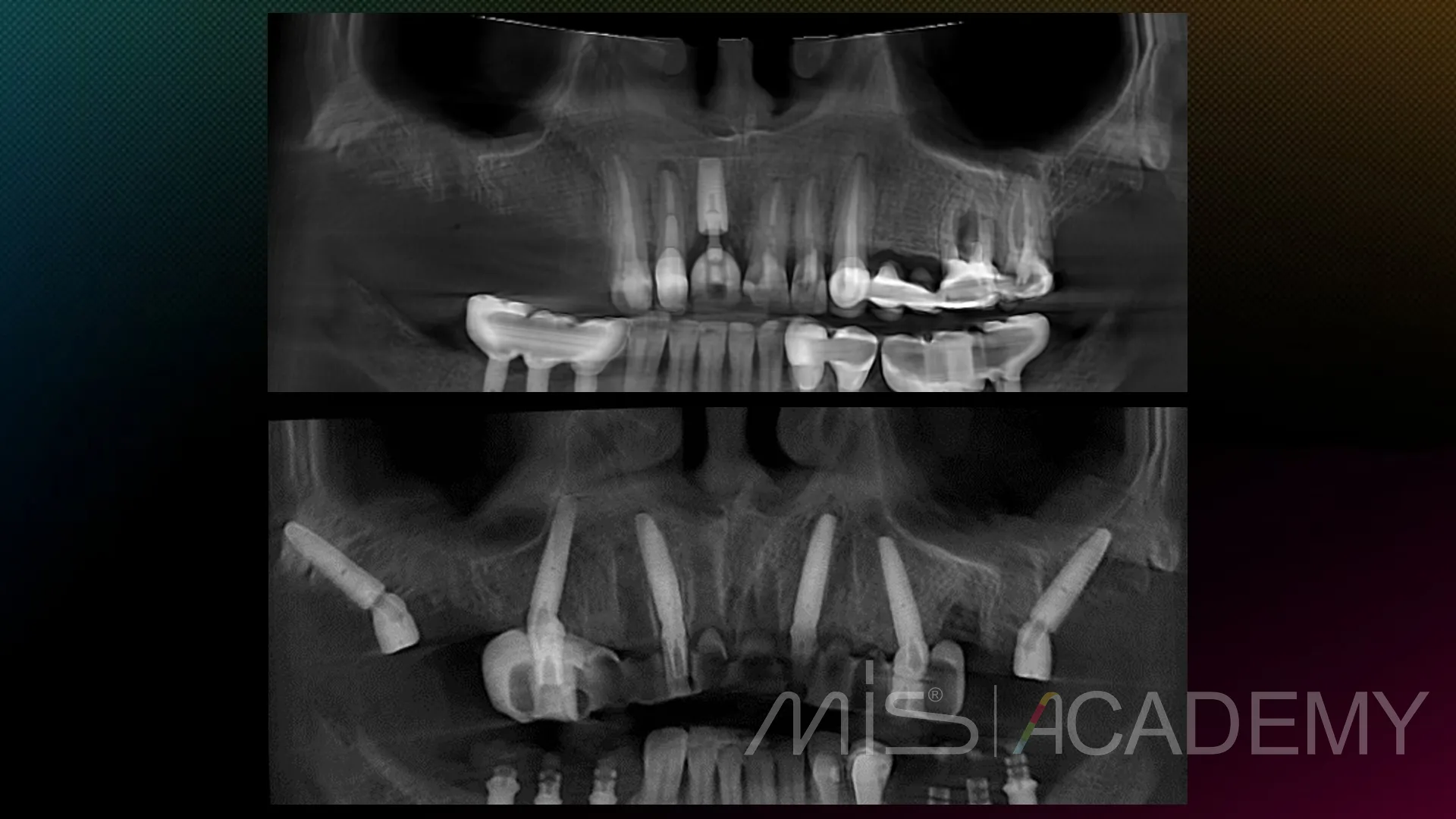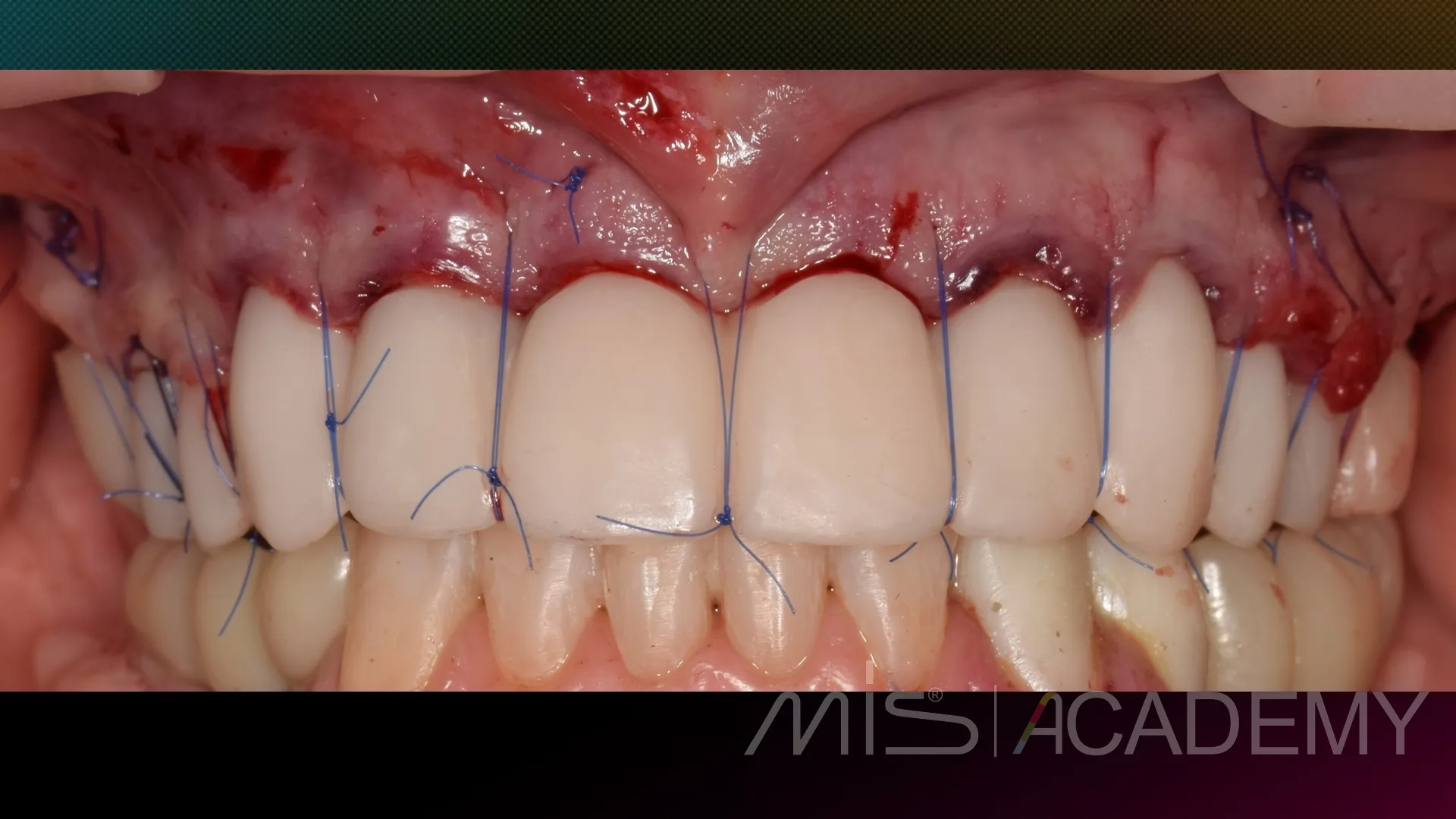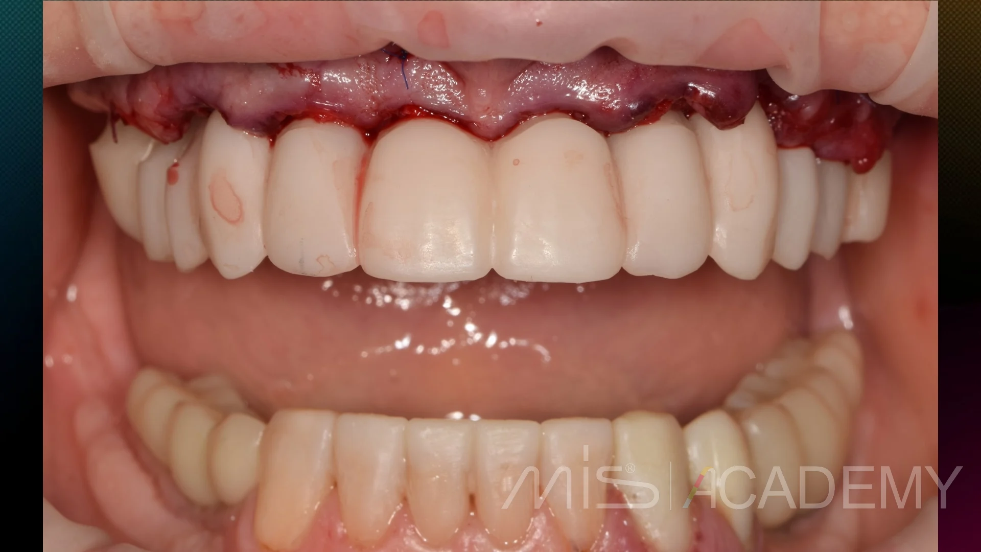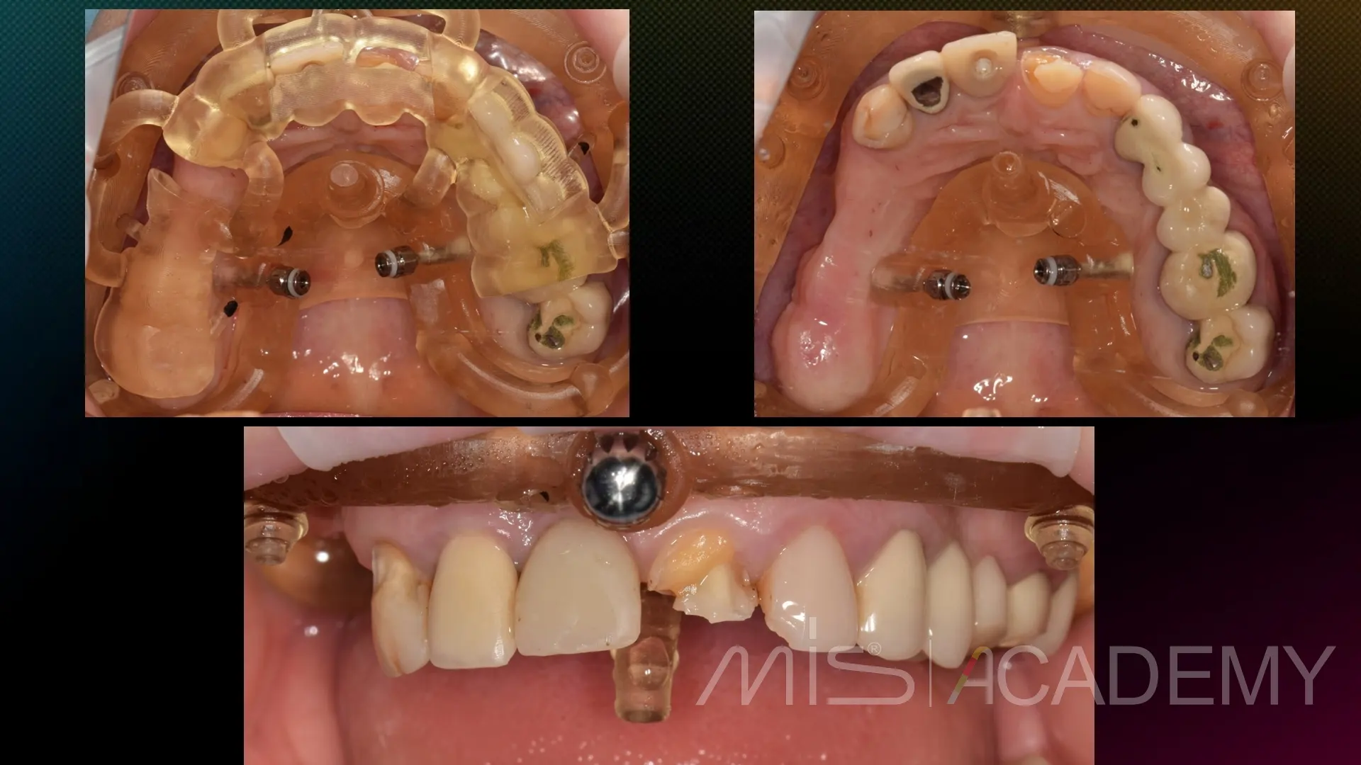 3. Удаление зубов на в/ч, установка 6 имплантатов MIS C1 по навигационному шаблону, мультиюнит абатменты, CONNECT абатменты в переднем отделе, в лунки — bio-oss, стимул-осс, пластика десны.