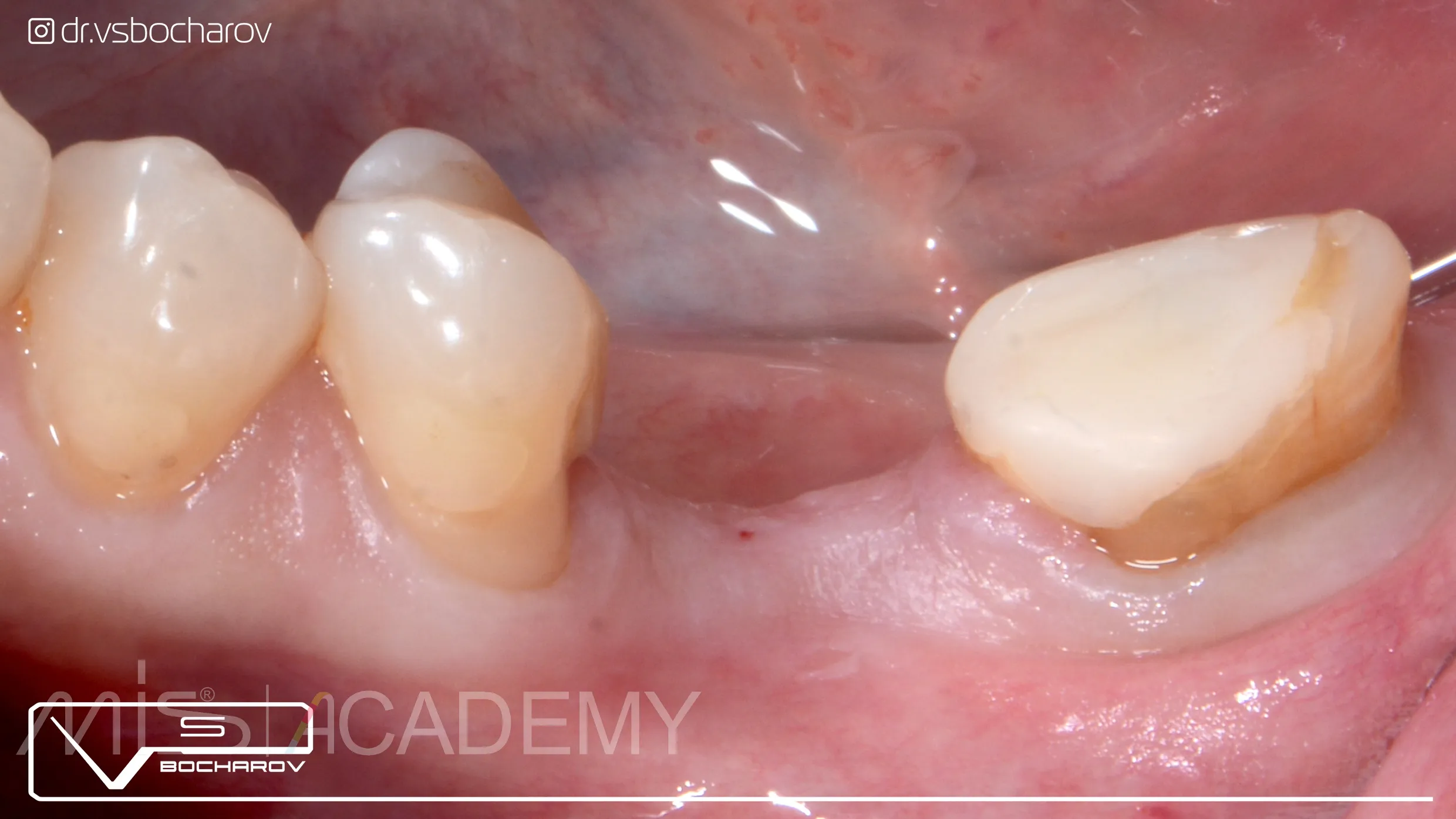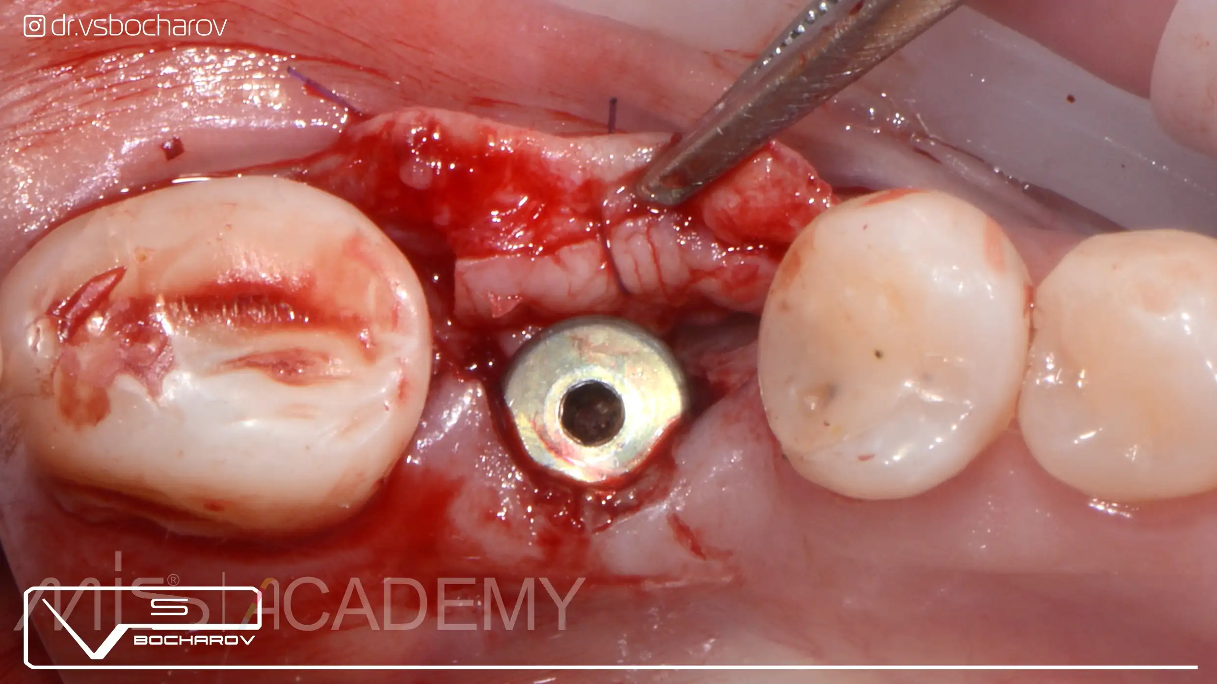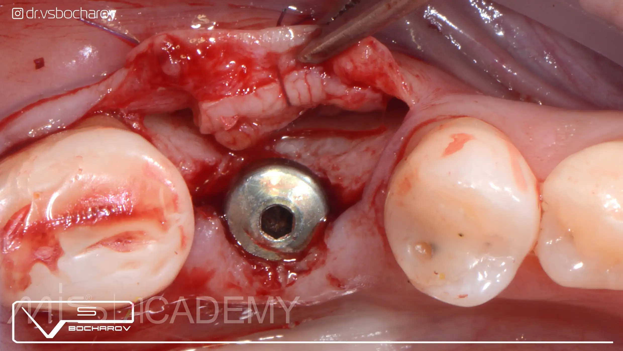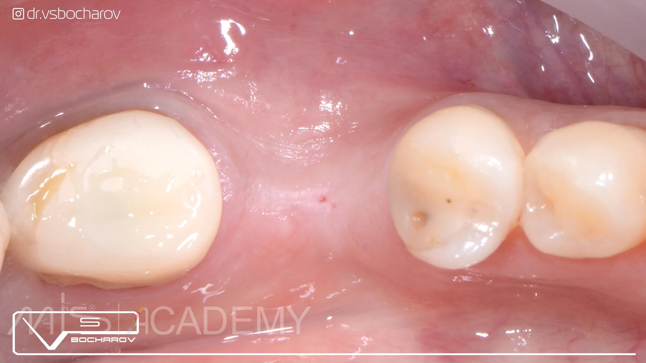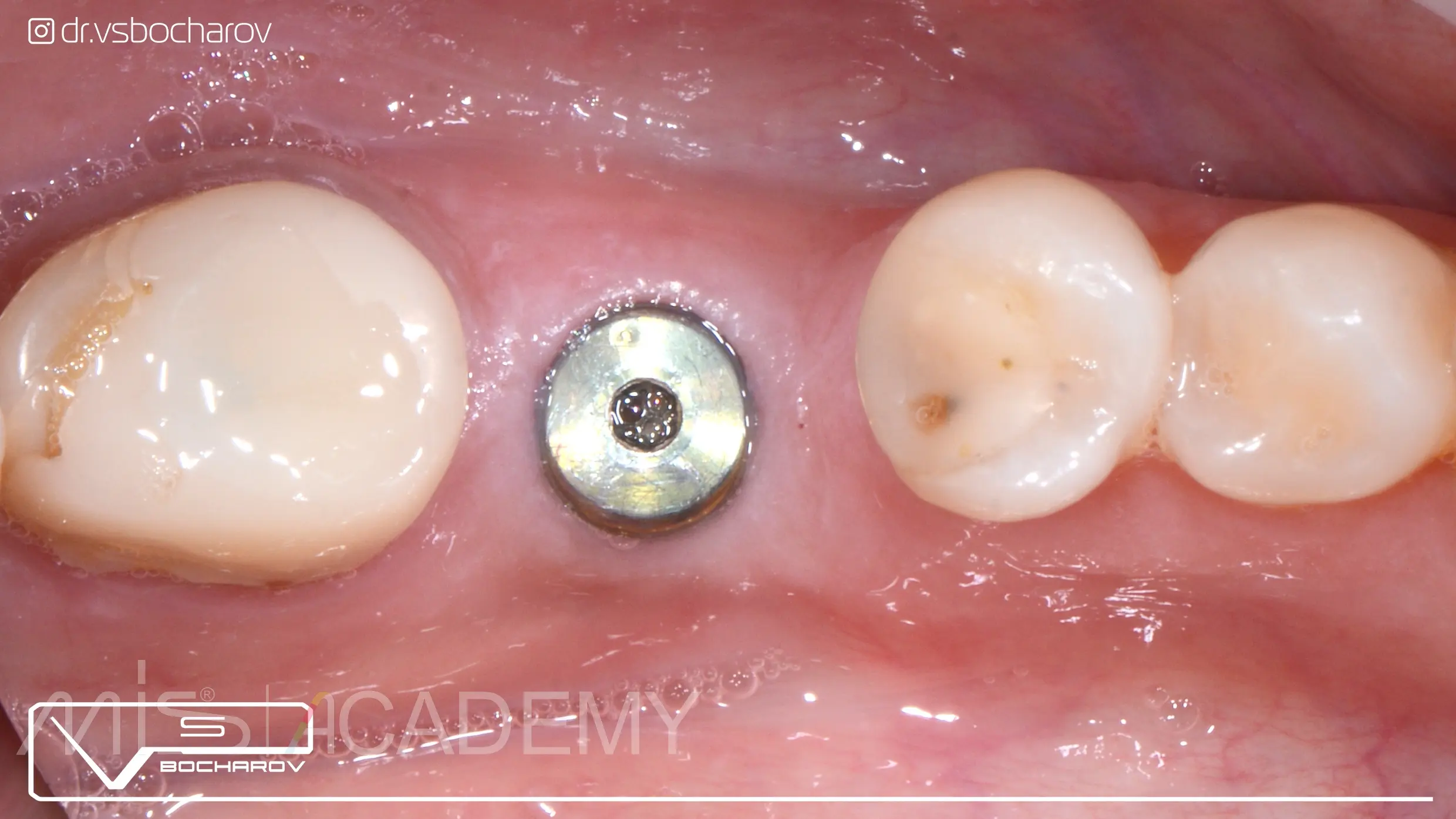 — Проведена установка имплантата МИС С1 с одномоментной аугментацией ССТ и установкой формирователя десны.