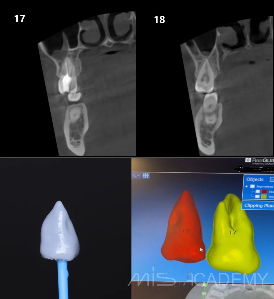 Нам повезло с анатомией 18 и 17 зубов, корни очень похожи по форме. Поэтому: