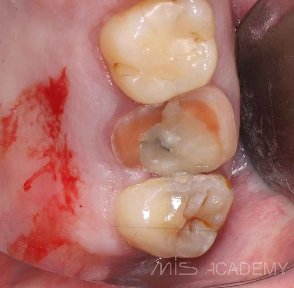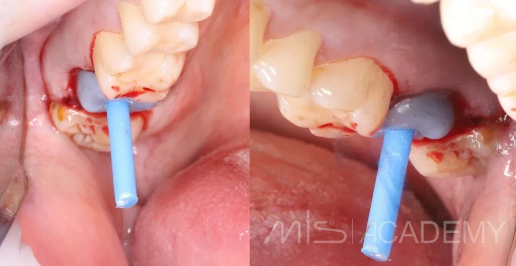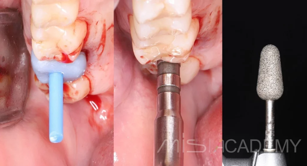 — с помощью остеотома и авторской фрезы Сабы Х. дорабатываю лунку 17 зуба, пассивность посадки проверяю напечатанным шаблоном
